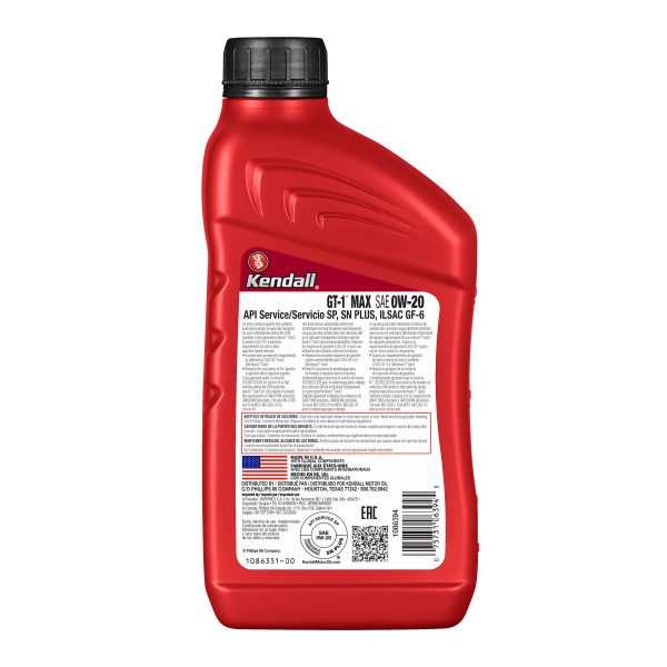 Kendall GT-1 MAX Full Synthetic SAE 0W-20 är en helsyntetisk motorolja av högsta kvalitet för bensinmotorer. Oljan klarar API krav (SP) och GM specifikation dexos1® Gen3 för moderna motorer men är även speciellt lämpad för hybridbilar med bensin-el motorer och bilar som går på E85.